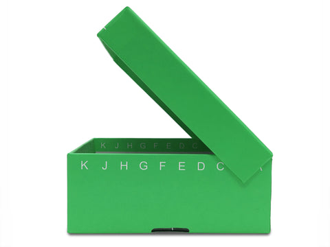 MSE PRO FlipTop™ hinged lid boxes are made of recyclable cardboard with a liquid-resistant outer coating. They are shipped fully assembled with 81-place or 100-place cardboard dividers. Each box has drain slots on the bottom surface and numbered grid markings in almost every conceivable location (top, bottom, sides, etc). Available in white and 5 individual colors, plus a “Rainbow Pack” of 5 assorted colors. Useful temperature range: -196° to +121°C.
