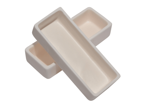 High purity alumina (aluminum oxide, Al2O3) lab crucibles have high melting point, high hardness and good chemical stability. Rectangular alumina boat crucibles are widely used for chemical calcination, metal casting and ceramic sample preparation.