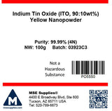 MSE PRO Indium Tin Oxide (ITO, 90:10wt%) Yellow Nanopowder 99.99% (4N), 100g