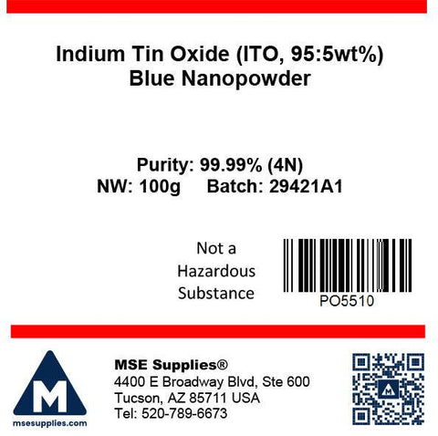 MSE PRO Indium Tin Oxide (ITO, 95:5wt%) Blue Nanopowder 99.99% (4N), 100g