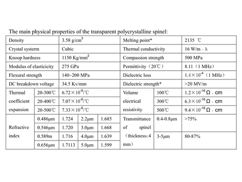 MgAl2O4 magnesium aluminate (spinel) single crystals are widely used in ultrasonic and microwave material and device related epitaxial growth. We also offer polycrystalline spinel optical windows.