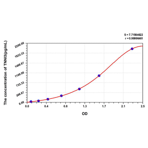| Test principle | The test principle applied in this kit is Sandwich enzyme immunoassay. The microtiter plate provided in this kit has been pre-coated with an antibody specific to Mouse TNNI3. Standards or samples are added to the appropriate microtiter plate wells then with a biotin-conjugated antibody specific to Mouse TNNI3. Next, Avidin conjugated to Horseradish Peroxidase (HRP) is added to each microplate well and incubated. After TMB substrate solution is added, only those wells that contain Mouse TNNI3, biotin-conjugated antibody and enzyme-conjugated Avidin will exhibit a change in color. The enzyme-substrate reaction is terminated by the addition of sulphuric acid solution and the color change is measured spectrophotometrically at a wavelength of 450nm ± 10nm. The concentration of Mouse TNNI3 in the samples is then determined by comparing the OD of the samples to the standard curve. |