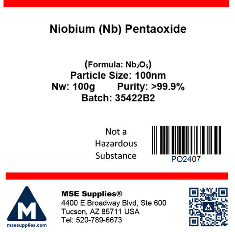 MSE PRO™ Niobium (Nb) Pentaoxide (Nb2O5) Nanoparticles, 100nm, >99.9% Purity, 100g