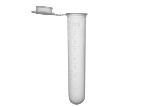 | C0910 | MSE PRO Round Bottom Tube with Attached Snap Cap, 10mL, Molded Graduations, Sterile, 10 bags of 100 tubes, 1000/cs |