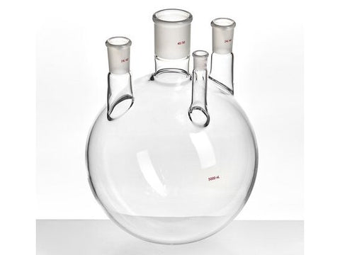 MSE PRO™ Straight Four-Mouth Round Bottom Ball Bottle, Main Mouth: 40/50, Side Mouth: 24/40, Front Mouth: 14/20, 5000mL