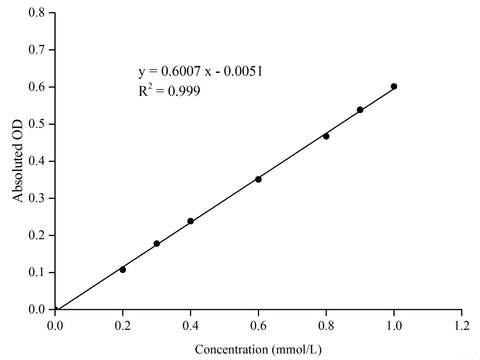 Isocitrate dehydrogenase (IDH) is one of the inverters in the tricarboxylic acid cycle and plays an important role in energy metabolism, amino acid and vitamin synthesis. The cofactors of this enzyme include two kinds of NAD+ and NADP+, which are located in different parts of the cell respectively. In eukaryotic cells, NAD-dependent isocitrate dehydrogenase mainly exists in mitochondria. Under the activation of the activator, IDH converts isocitrate into α-ketoglutaric acid. Meanwhile, NAD+ is reduced to NADH, which under the action of hydrogen transmitter, transfer electrons to WST-8 to produce the yellow product. The activity of NAD-IDH can be calculated by measuring the change of absorbance value at 450 nm.