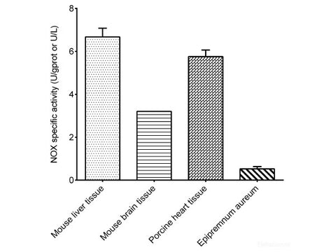 NADH Oxidase(NOX)is widely found in the animals, plants, microorganisms and cultured cells, which can directly oxidize NADH to NAD+ in the presence of oxygen, and reduce blue DCPIP to colorless DCPIP. The activity of NOX can be calculated by measuring the reduction rate of blue DCPIP at 600 nm.
