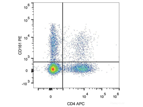 | Recommended Use | Each lot of this antibody is quality control tested by flow cytometric analysis. The amount of the reagent is suggested to be used 5 µL of antibody per test (million cells in 100 µL staining volume or per 100 µL of whole blood). Please check your vial before the experiment. Since applications vary, the appropriate dilutions must be determined for individual use. |