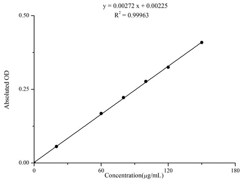 As the OD value of the standard curve may vary according to the conditions of the actual assay performance (e.g. operator, pipetting technique or temperature effects), so the standard curve and data are provided as below for reference only: