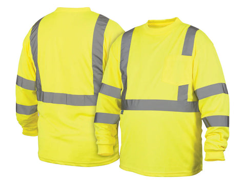 Hi-vis lightweight polyester moisture wicking long sleeve t-shirt.