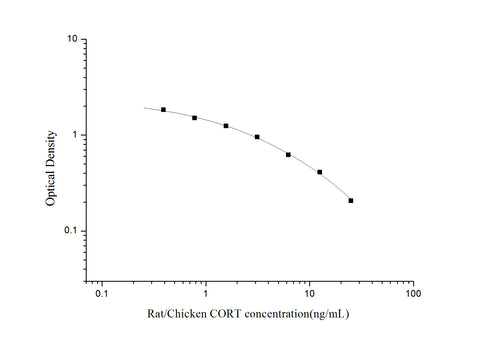 This ELISA kit uses the Competitive-ELISA principle. The micro ELISA plate provided in this kit has been pre-coated with CORT. During the reaction, CORT in the sample or standard competes with a fixed amount of CORT on the solid phase supporter for sites on the Biotinylated Detection Ab specific to CORT. Excess conjugate and unbound sample or standard are washed away, and Avidin-Horseradish Peroxidase (HRP) conjugate are added to each micro plate well and incubated. Then a TMB substrate solution is added to each well. The enzyme-substrate reaction is terminated by the addition of stop solution and the color turns from blue to yellow. The optical density (OD) is measured spectrophotometrically at a wavelength of 450 nm ± 2 nm. The concentration of CORT in tested samples can be calculated by comparing the OD of the samples to the standard curve.