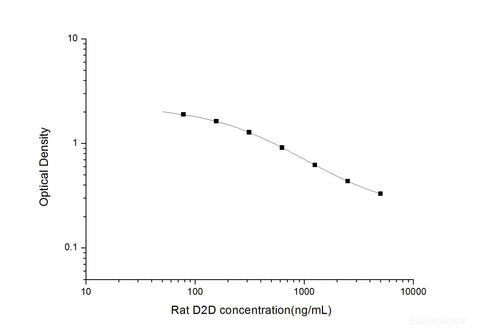 This ELISA kit uses the Competitive-ELISA principle. The micro ELISA plate provided in this kit has been pre-coated with an antibody specific to Rat D2D. Standards or samples are added to the micro ELISA plate wells and combined with the specific antibody. Then a biotinylated detection antibody specific for Rat D2D and Avidin-Horseradish Peroxidase (HRP) conjugate are added successively to each micro plate well and incubated. Free components are washed away. The substrate solution is added to each well. Only those wells that contain Rat D2D, biotinylated detection antibody and Avidin-HRP conjugate will appear blue in color. The enzyme-substrate reaction is terminated by the addition of stop solution and the color turns yellow. The optical density (OD) is measured spectrophotometrically at a wavelength of 450 nm ± 2 nm. The OD value is proportional to the concentration of Rat D2D. You can calculate the concentration of Rat D2D in the samples by comparing the OD of the samples to the standard curve.