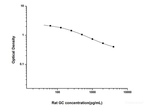 This ELISA kit uses the Competitive-ELISA principle. The micro ELISA plate provided in this kit has been pre-coated with GC. During the reaction, GC in the sample or standard competes with a fixed amount of GC on the solid phase supporter for sites on the Biotinylated Detection Ab specific to GC. Excess conjugate and unbound sample or standard are washed away, and Avidin-Horseradish Peroxidase (HRP) conjugate are added to each micro plate well and incubated. Then a TMB substrate solution is added to each well. The enzyme-substrate reaction is terminated by the addition of stop solution and the color turns from blue to yellow. The optical density (OD) is measured spectrophotometrically at a wavelength of 450 nm ± 2 nm. The concentration of GC in tested samples can be calculated by comparing the OD of the samples to the standard curve.