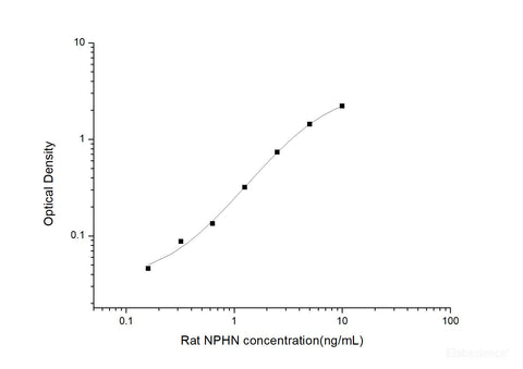 This ELISA kit uses the Sandwich-ELISA principle. The micro ELISA plate provided in this kit has been pre-coated with an antibody specific to Rat NPHN. Standards or samples are added to the micro ELISA plate wells and combined with the specific antibody. Then a biotinylated detection antibody specific for Rat NPHN and Avidin-Horseradish Peroxidase (HRP) conjugate are added successively to each micro plate well and incubated. Free components are washed away. The substrate solution is added to each well. Only those wells that contain Rat NPHN, biotinylated detection antibody and Avidin-HRP conjugate will appear blue in color. The enzyme-substrate reaction is terminated by the addition of stop solution and the color turns yellow. The optical density (OD) is measured spectrophotometrically at a wavelength of 450 nm ± 2 nm. The OD value is proportional to the concentration of Rat NPHN. You can calculate the concentration of Rat NPHN in the samples by comparing the OD of the samples to the standard curve.