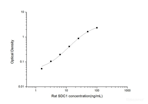 This ELISA kit uses the Sandwich-ELISA principle. The micro ELISA plate provided in this kit has been pre-coated with an antibody specific to Rat SDC1. Standards or samples are added to the micro ELISA plate wells and combined with the specific antibody. Then a biotinylated detection antibody specific for Rat SDC1 and Avidin-Horseradish Peroxidase (HRP) conjugate are added successively to each micro plate well and incubated. Free components are washed away. The substrate solution is added to each well. Only those wells that contain Rat SDC1, biotinylated detection antibody and Avidin-HRP conjugate will appear blue in color. The enzyme-substrate reaction is terminated by the addition of stop solution and the color turns yellow. The optical density (OD) is measured spectrophotometrically at a wavelength of 450 nm ± 2 nm. The OD value is proportional to the concentration of Rat SDC1. You can calculate the concentration of Rat SDC1 in the samples by comparing the OD of the samples to the standard curve.