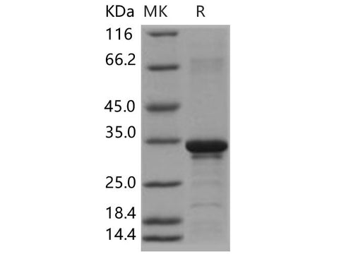 | Purity | > 85 % as determined by reducing SDS-PAGE. |