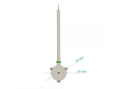 The sample holder (also known as flat specimen holder) is used for holding flat, circular or square/rectangular samples. It enables contacting the sample from the front (e.g. ITO/FTO glass, Monolayer Graphene on SiC, or Boron-Doped Diamond thin film on various substrates) and from the back (e.g. metal specimen, Glassy Carbon plate, Boron-Doped Diamond plate). The nominal aperture is 0.07cm2, but other value can be provided on request. The large electrical contact with tantalum (formerly copper) foil surface (not being in contact with an electrolyte) ensures optimal current collection by minimizing electrical resistance and unifying current distribution. The rod with electrical connection has a diameter of 6 mm, which makes the sample holder compatible with our voltammetry cells and jacketed cells, as long as it fits in. We may also provide an adapter to install this sample holder in openings larger than 6 mm dia.