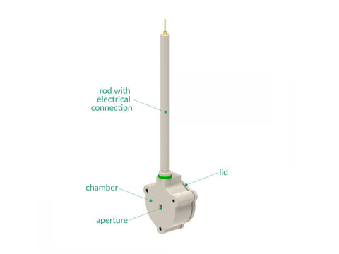 The sample holder elements are constructed with materials that are inert to the electrochemical system (PEEK, Fluorocarbons). It well fits aqueous (FKM/EPDM O-Rings) and organic solvent (FFKM O-Rings) electrolyte requirements. The construction is well sealed which prevents the electrolyte to leak inside.