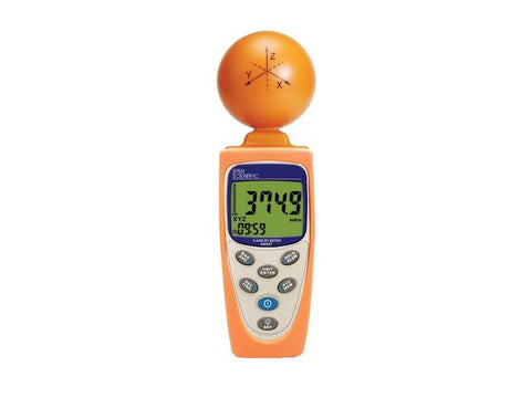 Sper Scientific's 3-Axis RF Meter 840047 measures RF (Radio Frequency) electromagnetic field strength in the frequency range of 50 MHz to 3.5 GHz. The 3-Axis probe provides simple, accurate, non-directional measurement from any angle. Results are displayed in large digits and a bar graph on a backlit LCD that also indicates maximum or average readings, low battery, and overload. You may set audible alarms a CAL (calibration) factor for a specific frequency or save and review up to 200 readings directly on the meter. Auto-ranging, with auto power off. Comes ready to use in a soft carrying case with belt loop, instruction manual and one 9V battery.
