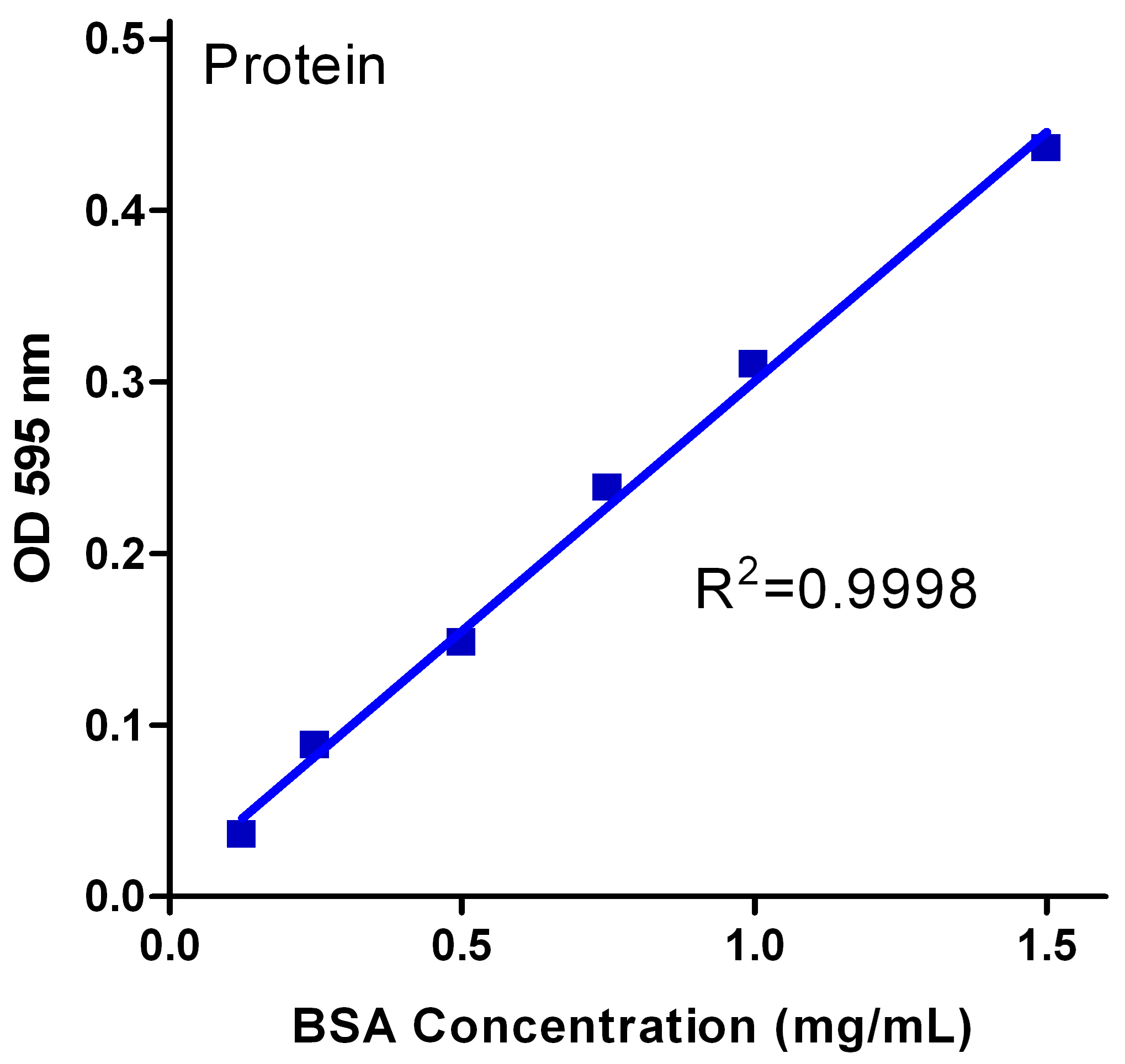 - Sensitive and accurate: Use 5 μL samples. Detection linear range 0.005 – 1.5 mg/mL protein in a 96-well plate assay.