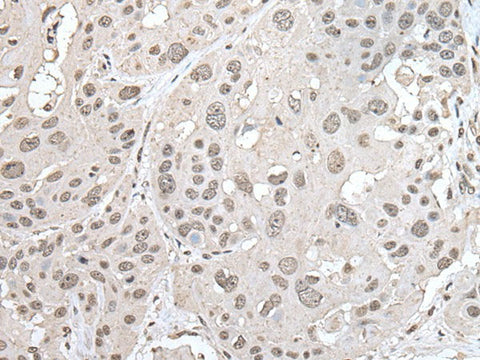 Cellular Localization Nucleus. Dispersed throughout the cell but not located on mitotic spindle or chromatids during mitosis.