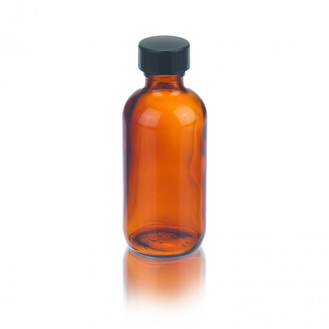 Boston round bottles made of clear Type III soda-lime glass are ideal for solvent, chemical or sample storage. The amber glass protects the contents from UV light.