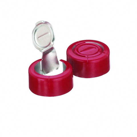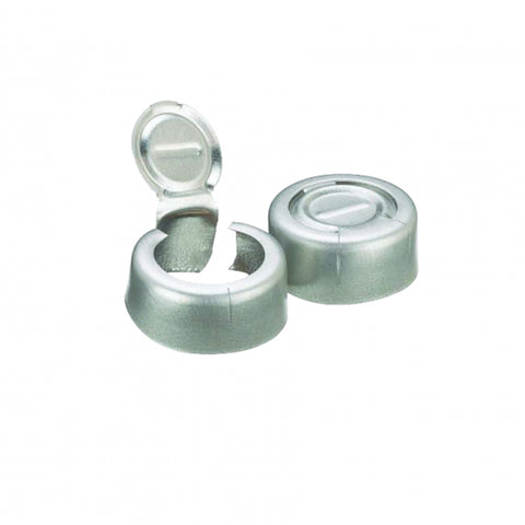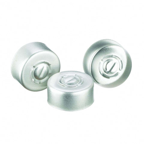 • Flip Tear Off (1 piece): Button stays affixed to an aluminum pull ring and is used to completely tear the aluminum seal from the vial